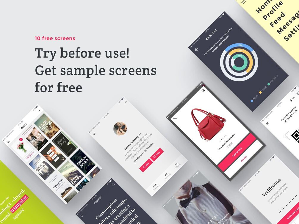 Create your app design, prototype or get inspired with more than 200 iOS screens and hundreds of UI elements, organized into 8 popular content categories.